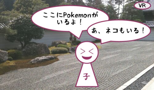 昨日、子どもとポケモンGOでポケモンを探していたところ、ポケモンGOアプリでスマホから流れるポケモンを発見したときの効果音が流れたとき、子どもが「ここにPokemonがいるよ!」と建物の裏側を指差した直後に、「あ、ネコもいる」と自動車の下にいるリアル…