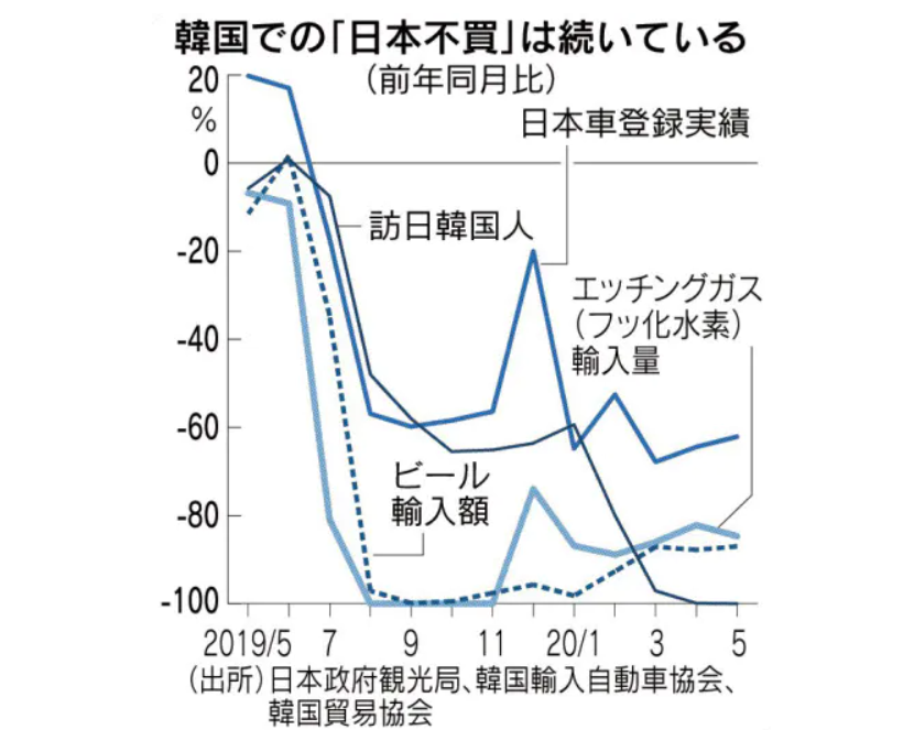 例えば次の記事で紹介されたグラフは、韓国での日本製品離れがもう1年間続いていることが一瞬で見て取れます。